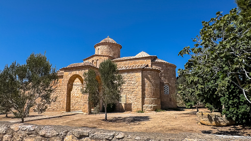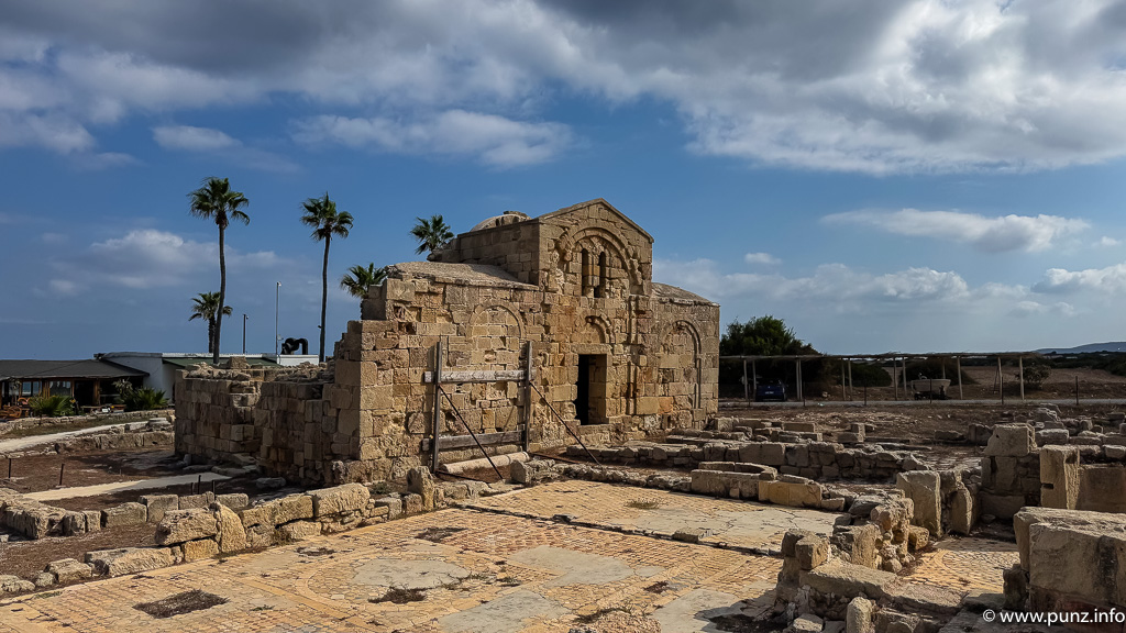 Tag 7: DIPKARPAZ – AGIOS THYRSOS Heute ging es die Nordküste entlang nach Agios Thyrsos mit einem Abstecher zur Agias Trias Basilika mit seltenen Bodenmosaiken. Die Übernachtung erfolgte in einem von Palmen umgebenen Hotel, mit Privatstrand.