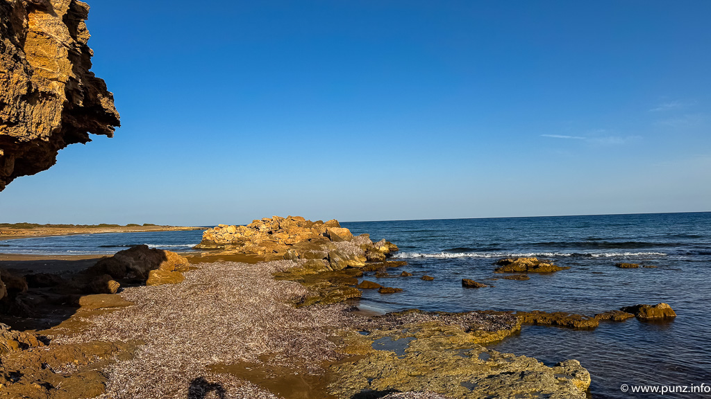 Tag 5: GOLDEN BEACH – KAP ANDREAS – DIPKARPAZ Weiter radelten wir an die Südküste, bis wir das Cap Andreas erreichten mit dem einsamen Kloster, wo nur mehr zwei Mönche ausharren. Korallenmöwen und Wanderfalken sind hier zu Hause. Hier verbrachten wir zwei Nächte in der Villa Lembos in Dipkarpaz.