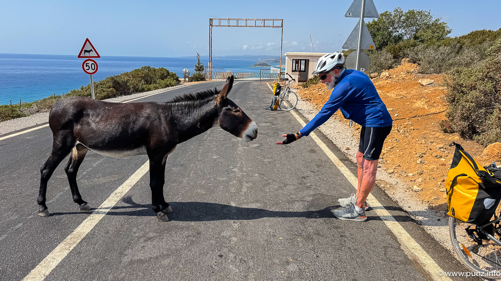 Tag 4: KURUOVA – LIVANA Heute gingt es die Südküste entlang. Auf dem Weg konnte man nach Belieben Abstecher zu einsamen Stränden machen, wo die Caretta-Caretta und die Grüne Schildkröte noch ihre Eier ablegen können. Wildesel sind in der Gegend überall zu finden. Etappenziel war das am Meer gelegene Livana Hotel.