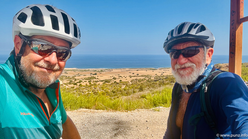 Tag 6: RUNDTOUR AGIOS PHILON UND APHENDRIKA Zunächst radelten wir zum Strand der Achäer an der Nordküste, wo die alte Basilika den antiken Hafen überragt. Anschließend ging es weiter die Küste entlang nach Aphendrika.